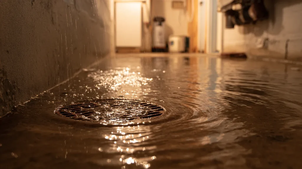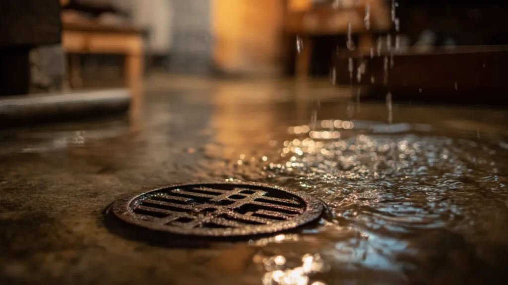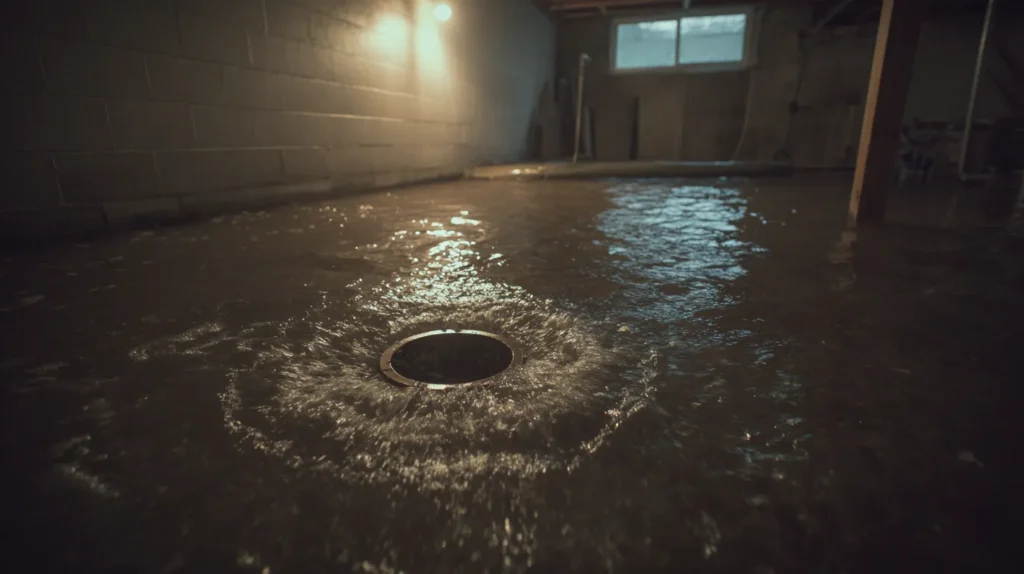 - Basement Floor Drain Backups: Heavy rain or sewer surges pushing water back inside.
