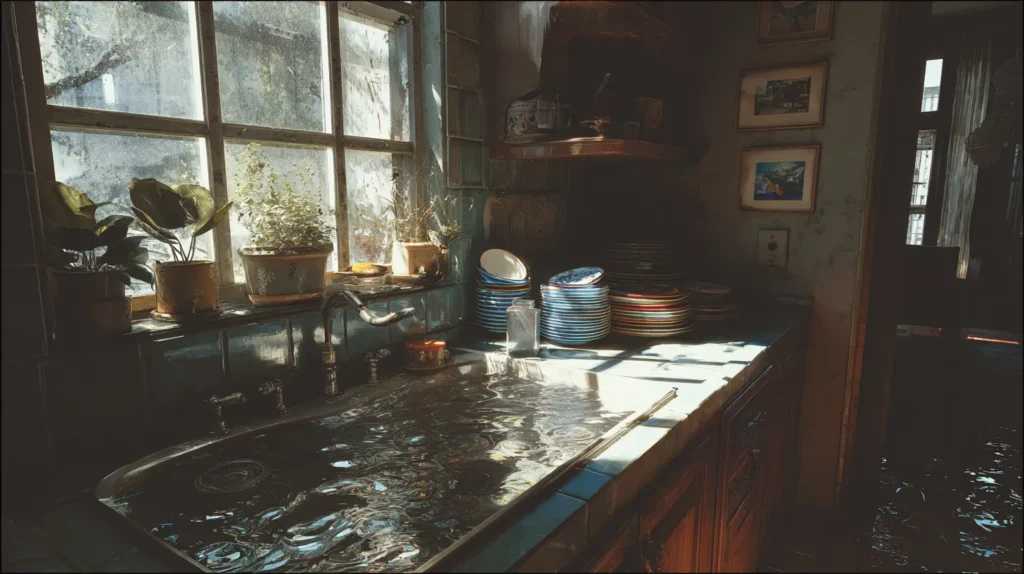 - Clogged Kitchen Drains: Grease buildup, food waste, and soap residue restricting sink flow.