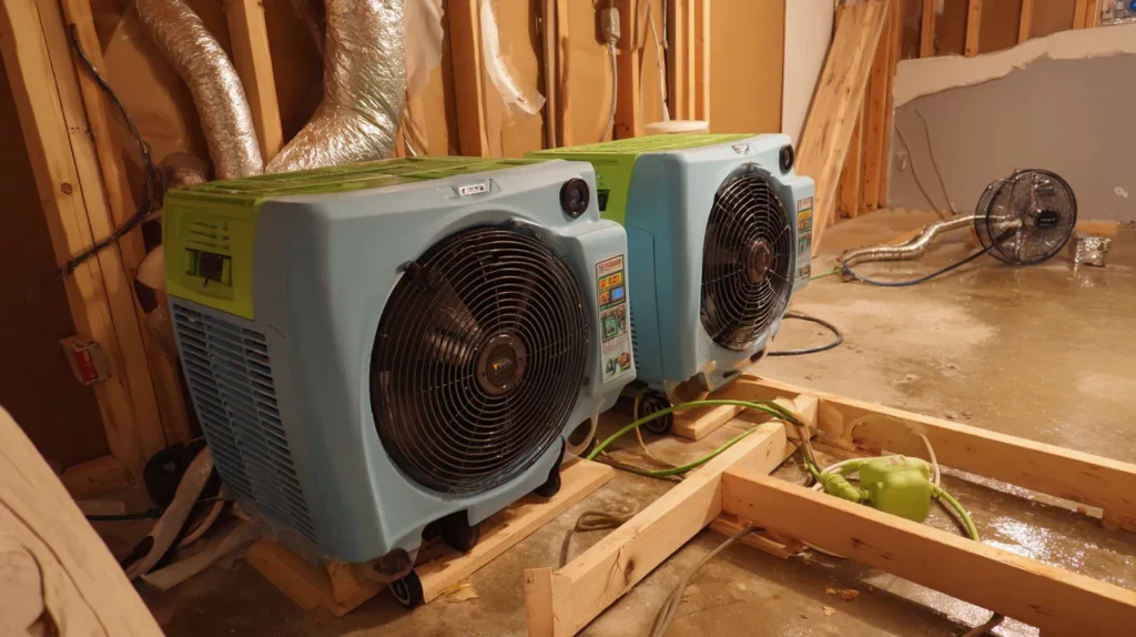 Drying equipment, dehumidification, drain clearing, backwater valve service, or sump pump replacement prevent repeat flooding.